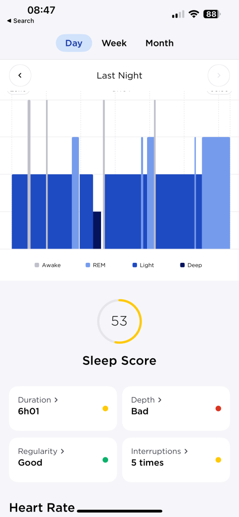 This weekend, my sleep numbers weren’t as great, for a few reasons. (Note that the date is based on when you wake up, not go to sleep)